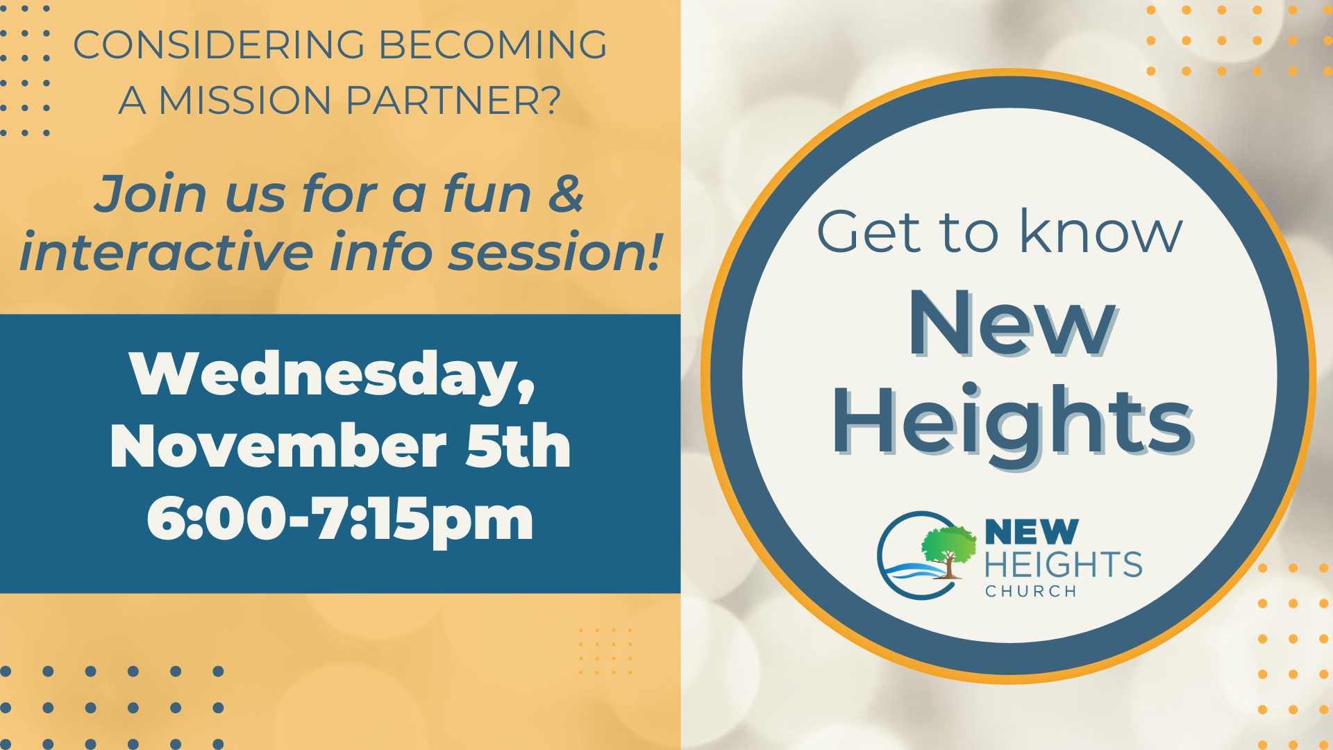 Join us for a Get to Know New Heights session on Wednesday, November 5th!